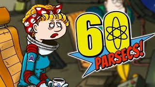 60 Parsecs! is a dark comedy sci-fi adventure game set in a post-apocalyptic space age where players frantically scavenge supplies and decide who to save before a space station explosion.