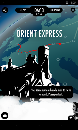 Balance your inventory to perform well but avoid carrying too much, which may slow you down. 80 DAYS is an intense race that operates on an in-game clock that never stops running. Use trains, steamers, hot-air balloons, horses, camels, and boats to move around the world, and keep track of your time.