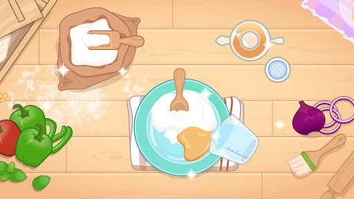 Pizza maker cooking game introduces step by step of how to make a pizza.