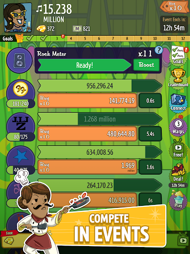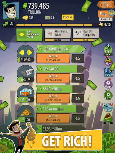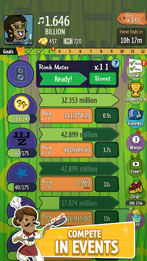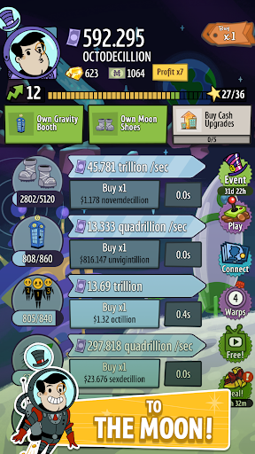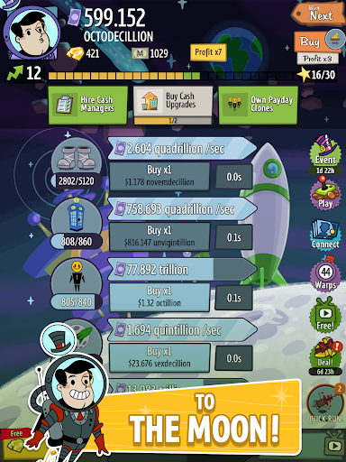 Embark on an intergalactic adventure to the Moon and Mars and discover new investments, upgrades, managers, and items. Become a competitive force by playing limited-time events like "The Root of all Evil" or "Saturday Morning Fever!" Climb the leaderboard, collect event-specific Managers and earn rewards.