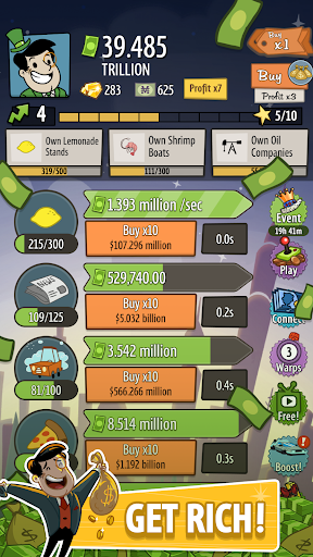 Take advantage of attracting Angel Investors to unlock maximum profit potential. Every Angel will generate a boost to your earnings, making every penny count in your journey to become an octillionaire.