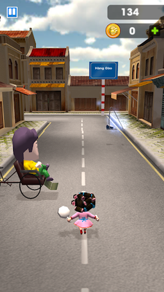 A house hold wife angry with her husband, and run finding him through the city. Help her on the journey, dodge passengers, cars, bus...