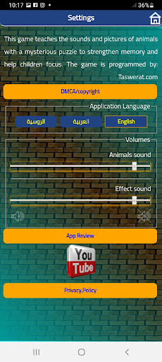 The sounds of animals and birds is an application and an educational game to teach children to recognize pictures of animals and their names in English, Russian and Arabic, as well as pronounce the sounds of animals and birds so that the child learns to distinguish between animals and birds.