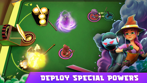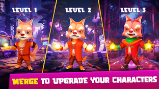 During gameplay, you'll spin the slot machine to unlock new characters and special abilities that will help you battle your opponents worldwide. You can also merge similar characters to make them more powerful before deploying them on the arena, which can create a better strategy during the gameplay.