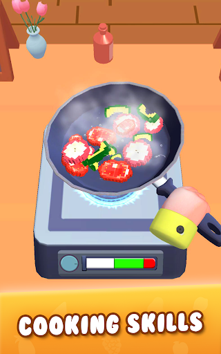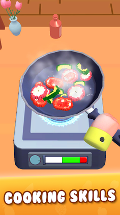 Level up through the game to try more challenging food-cooking tasks!