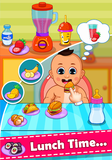 Baby Food 🍩 : Take Sweet baby to the feeding chair in the Kitchen and feed the Baby some delicious baby food including Pastry, Tasty Tacos, Sweet Shushi, Yummy Donuts, Burger, French Fries, Frankies, Hotdog and delicious Pizza.