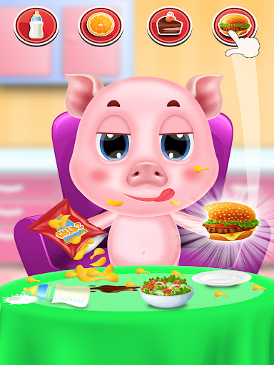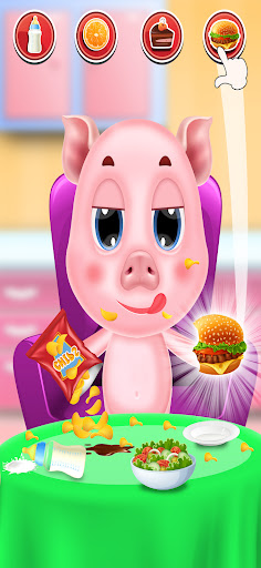 - Shake, turn and swipe to prepare delicious and nutritious meals for the baby pig