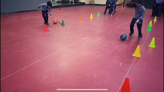 Zig Zag ball rolling with hoopla / PE fun games for studentsFitness Adventure