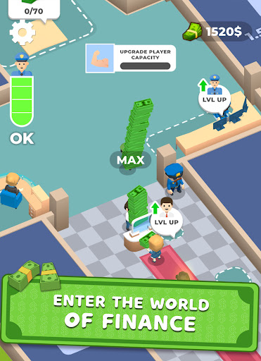Play Bank Idle Arcade now and discover how it feels to make financial decisions and own crazy amounts of money. Money that comes easy when you're at the top!
