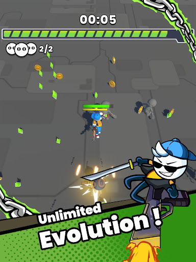 Fight with both melee and ranged attacks in an ever-changing arena where enemies spawn from all directions. Be the last one standing and emerge victorious in this intense and challenging battle for survival!