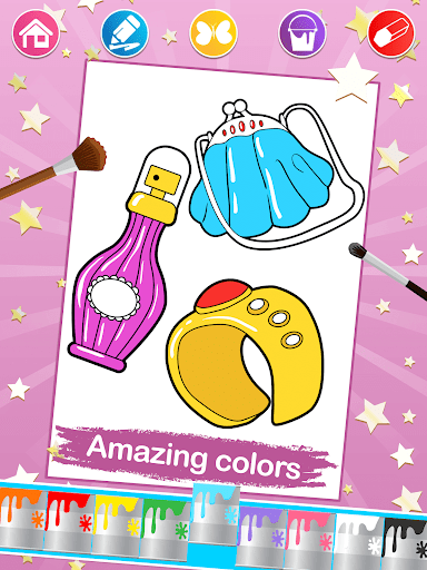 You can fill the colors in prepared image outlines and can also create your own original drawings. It is so simple and easy even the youngest kids can play it. The game includes a lot of beautiful images of famous and beloved beauty products, clothes, hats, sunglasses, jewelry, bags and wallets.