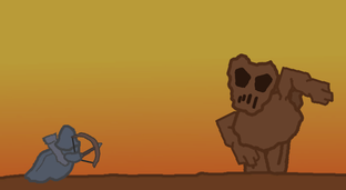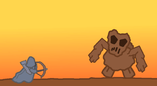 You play a hero that wields a bow and fends of a giant for as long as you can.