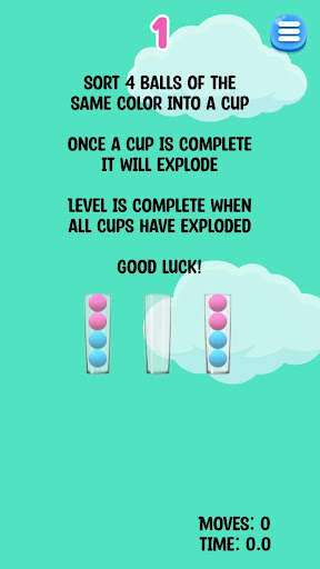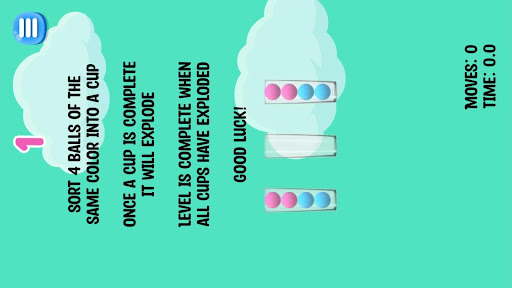 Your task is simple: Sort 4 balls of the same color into a cup, and watch them explode in a dazzling display of color and sound.