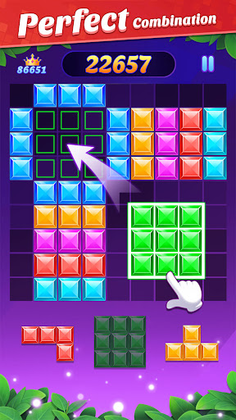 ● Drag and drop gem blocks into the 9x9 grid. 🧩✨