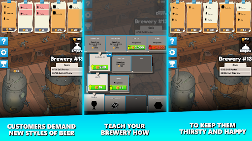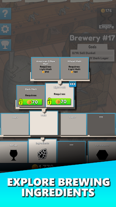 Optimize your brewery for the fastest growth possible. Eventually your brewery will reach it's full potential, and it's time for you to open another one. Keep repeating to grow your brewery empire. Each new brewery brings new discoveries and passive income.