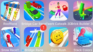 Snow Race,Bridge Car Race,Coin Rush,Stack Colors,Brick Builder 3D,Twerk Catwalk,Roof Race...........GamePlay Adventure