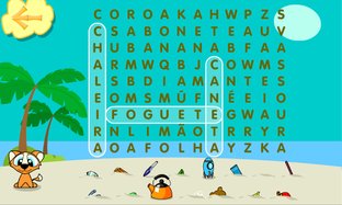 Na praia, a brincadeira é desenterrar os objetos da areia achando seus nomes em um caça palavras. Na ponte, para atravessar de uma lado para o outro, é preciso formar as palavras usando as sílabas. E o terceiro desafio é ajudar a joaninha a achar as letras em um labirinto nas ruínas da cidade perdida.