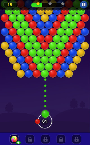 Match 3 bubbles of the same color to remove. Need to clear the board.