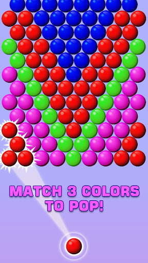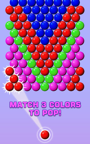 Shoot bubbles, Match 3 bubbles of the same color to pop! Clear the board and pass the level!