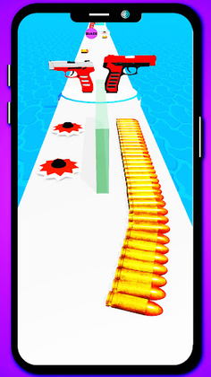 In this bullet runner long stack rush game, You have to collect the bullets as many as you can along the way to build the longest stack of bullets to load the guns to shoot the enemies and break down everything on the way to clear the path and avoid obstacles and traps on the road to reach at the end.