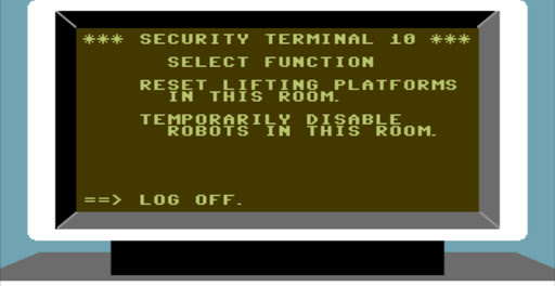 The player races against the clock to reassemble and decrypt the password to Atombender's control room while avoiding deadly robots.