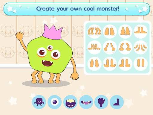 Have your children create their own cool monster creations in our fun Character Builder hall! They can then head over and bring along the monsters to the Playground where it's a pretend-play alike arena for them to feed, play with tons of fun toys, plant some yummy fruits, and make some yummy ice creams out of them!