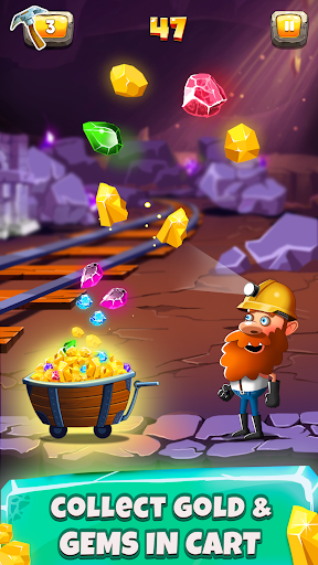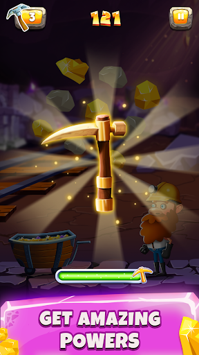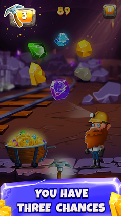 You need to throw the hammers at the stones on time and knock them down. Simply, tap on the screen to do that. You will get three chances in each mine in the form of 'hammers' to break the gems. If you are unable to hit all of them in three turns, you will lose this endless-fun adventure gold mining game.