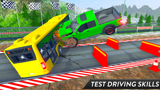Feel this realistic high speed crash simulator, go down the ramps and crash into the ground, drive different vehicles in the same scene, crash with other cars and survive. Feel like you are playing a crash simulator mode, fast action, demolition derby and car war games.