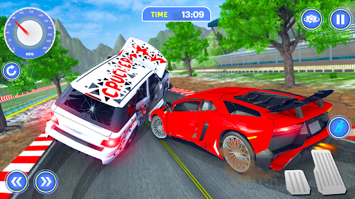 Get off the roads at high speed and go over potholes if possible, jump over extreme ramps and inflict maximum damage possible. Use Crushers or grand cars to crush other vehicles. Enjoy extreme destruction on the mountain map where you will drive your car down the mountain and tear it into a thousand pieces watching how the cars collide.