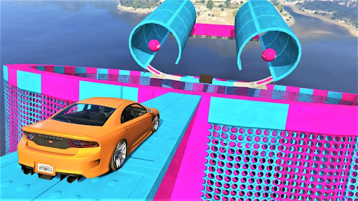 You don't have to further look for an easy-to-play ramp car stunts simulation game with realistic driving experiences anymore. All the speed you need, amazing cars and psychedelic races that'll stop your heart are converged into Car Parkour, Flipping mega ramp impossible stunts.