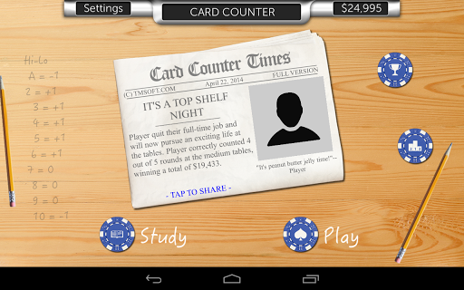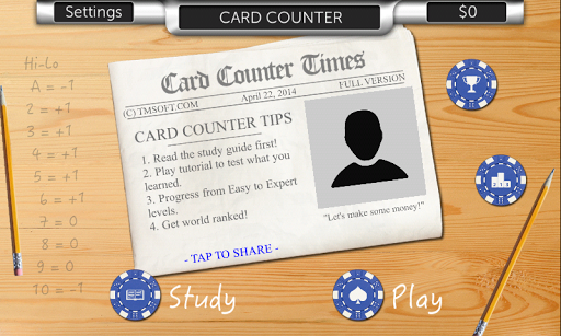 You love Blackjack and know what to do in every hand, but now you want more! Card Counter will teach you everything you need to know about card counting without having to enroll at MIT.