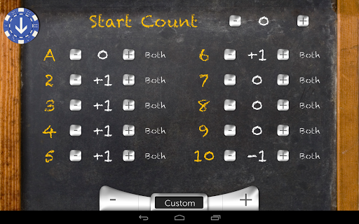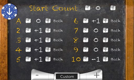 * Pick the Card Counting system you want to learn by selecting Hi-Lo, Hi-Opt I, Hi-Opt II, KISS III, KO, Omega II, Red 7, Silver Fox, and Zen Count, or add your own counting system by specifying the card count values and starting count.