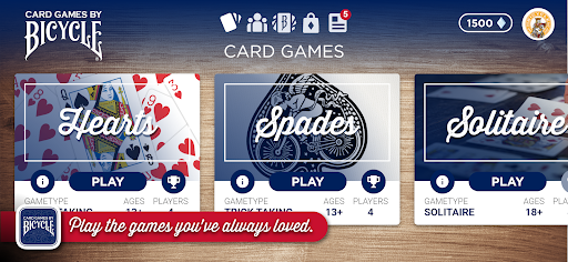 Play the most popular card games with authentic Bicycle Playing Card designs in a variety of game modes.