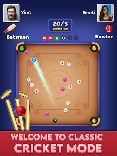 Play Cricket in Carrom - New Carrom 3D board game - disc pool game.