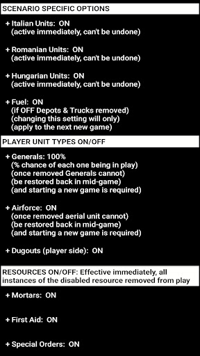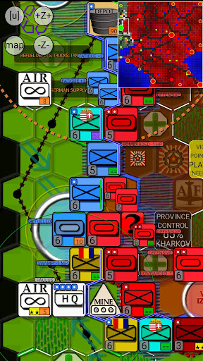 + Settings: A ton of options to alter the gaming experience: Change difficulty level, hexagon size, Animation, choose icon set for units (NATO or REAL) and cities (Round, Shield, Square, block of houses), turn supporting unit types like Generals/Airforce/Minefields ON/OFF, allow Storms and supply depots for combat units, and much more.