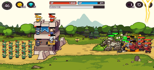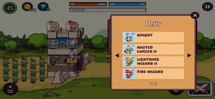 You must place the soldiers in the best positions to stop the waves of enemies. Both the lightning mage and the battle button can be tapped to launch a wave of enemies into battle. Click on the swordsman to summon combat units. Defend your castle from incoming enemy forces! You can also view the skill upgrade menu by selecting the skill button.
