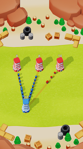 You need to allocate battlefield resources reasonably, constantly allocate troops to deal with the enemy, and ultimately win the war.When all the towers are occupied by your soldiers, you will be the ultimate winner!