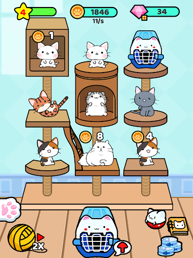 Start by merging your kittens into adorable cute furry felines. Then grow your cat tree into a massive cat tower.