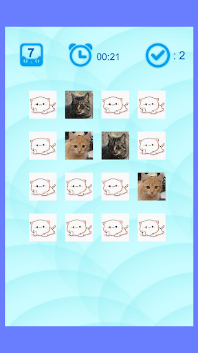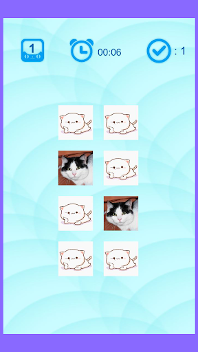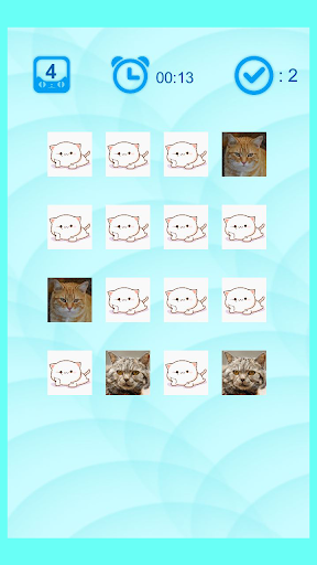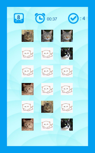 For each level, player is required to tap the square buttons and need to memorize what is behind it in order to match its couple. Players are required to complete a level in minimum finger taps to match all cats.