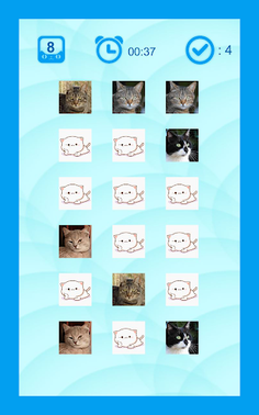 * Memory match game contains very cute images of cats, which are on memory cards.