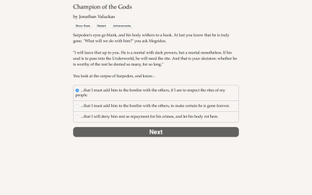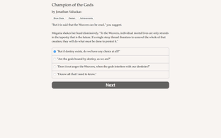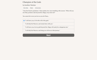 Save your people in "Champion of the Gods" by fighting foes, making choices and outwitting gods in this immersive text-based interactive novel.