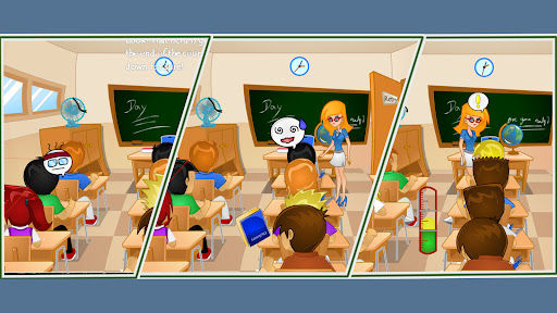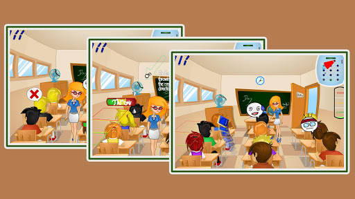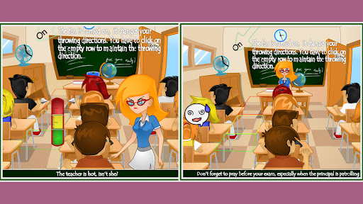 An ordinary day at school was not ordinary at all. It turned out that today you have to pass a very important exam, but you're not ready! Use all your dexterity and resourcefulness to throw a piece of paper to the wise guy so that he prompts you the correct answers to questions. Then rewrite everything before the lesson ends. Be extremely careful so teacher wouldn't notice you. And be secretive from the nerd who will betray you!