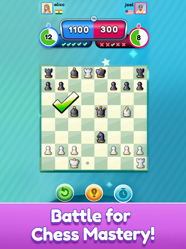 Engage in exciting 2-player chess battles. From the intriguing checkmate in 1 puzzle to the complex endgame ches challenges. A chess game app for kids & for all ages, this game offers plenty of challenges and opportunities for you to practice chess and improve your skills.Time to play like a chess master. Engage in a unique Player versus Player mode of chess puzzles that offer challenges on different board sizes.