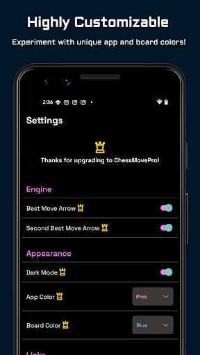 In the settings, users can customize the look of their app with various boards and app colors. Upgrade to the Pro version in order to unlock the full suite of customizations for the app and take your experience to the next level!