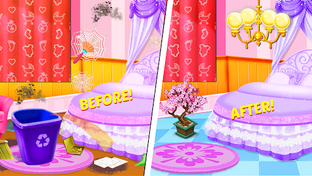 you may clean the floor by mop, and clean all the water in the bedroom which kids just dropped here. You may find all the dirty items and put them in bin. In cleaning games, find hidden objects and put them on right place. In girls games kids can decorate your dream room as you want.
