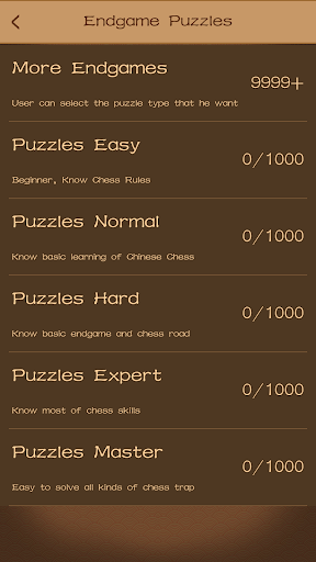 1. More than 6000 Endgame Puzzles, from easy to master, 5 levels.