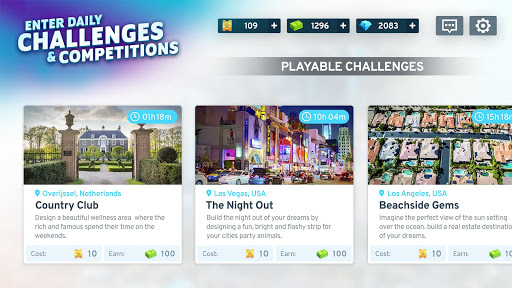 - Improve your city-building skills in daily challenges and style visually stunning districts.