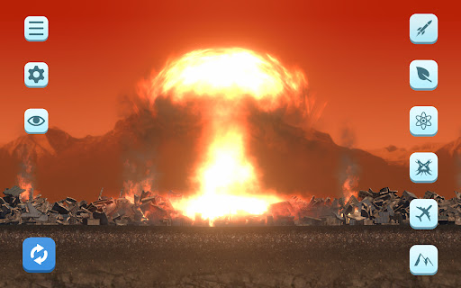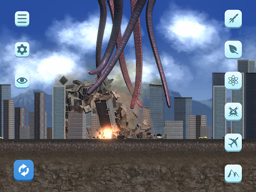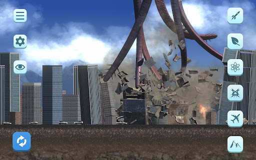 Create destruction with realistic physics using nuclear bombs, missiles, black holes, laser beams, or lightning in a city-design meant to fall apart.