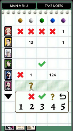 Success in solving the murder before your opponents comes down to how good you get at taking notes and here you'll have a detective notepad allowing for those oh-so-important individual numbering systems within the game itself. When you figure out how to use numbers and special symbols in your notepad to effectively track potential clue holders apart from evident information, you'll increase your chances to solve the murder before the other detectives dramatically. Taking notes directly after a suggestion makes the notepad cycle through a reduced mode making it easier to mark what happened just then before going fullscreen and making additional deductions.