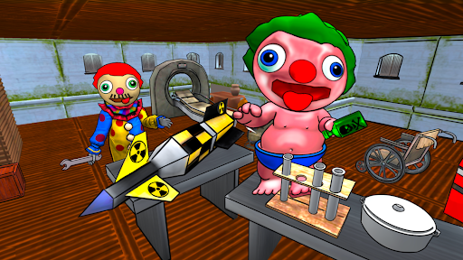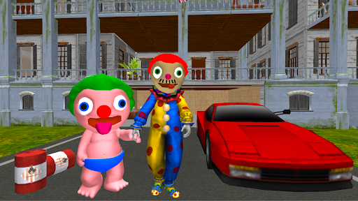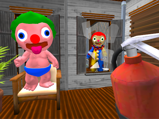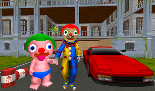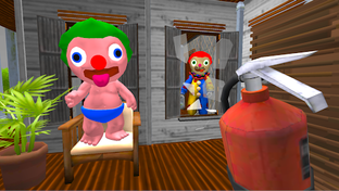 When you came to say hello to your new clown neighbors, they immediately started following you. You did escape away to your house and decided to investigate to find out why they are acting so strangely. Sneak into their house undetected and find out what secrets the clown daddy neighbor and his baby are hiding!